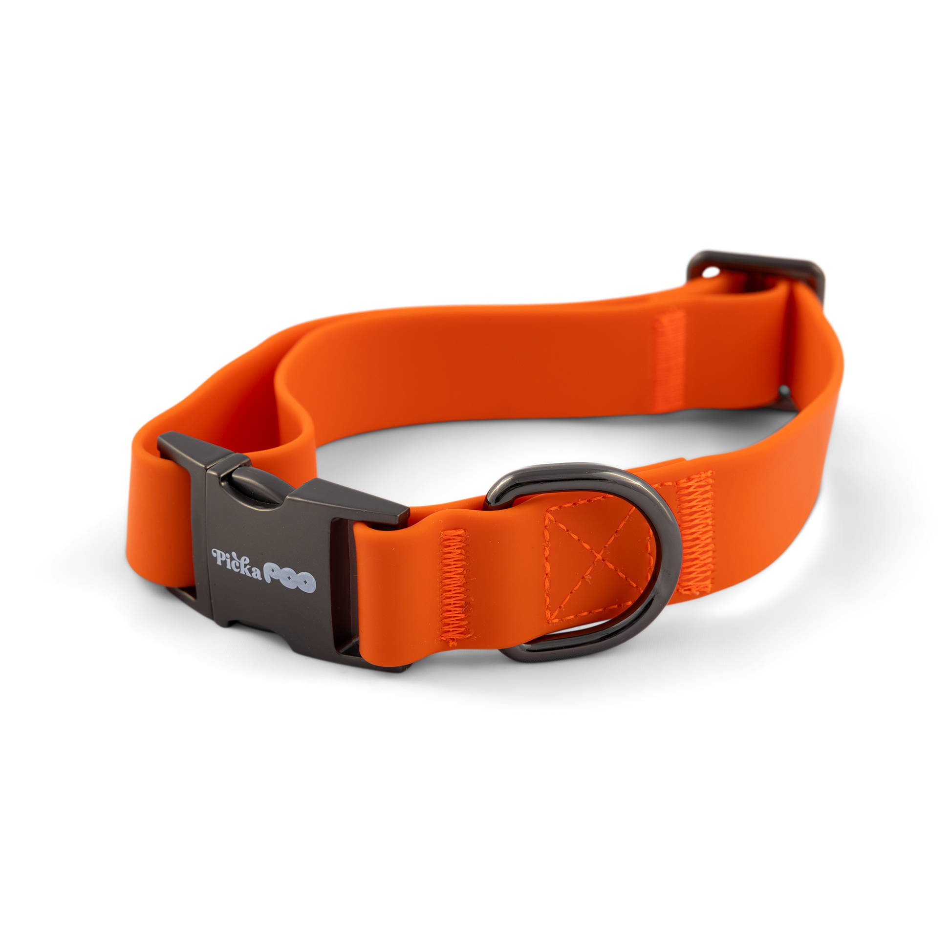 Ett elegant halsband i väderbeständigt material med metallspänne och modern design. Bekvämt för hunden, tåligt för vardagen och perfekt matchat till kopplet.